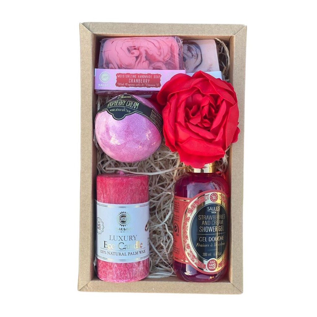 Dárkový balíček Jahoda-malina, je balíček plný oblíbených dárků pro dámy. Pečlivě jsme pro vás vybrali TOP z našich nejlepších produktů a udělali jsme balíček přímo na míru.