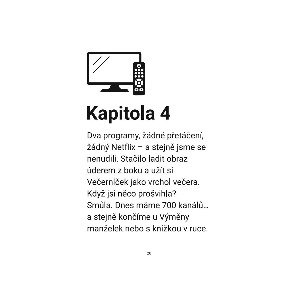 • 20 kapitol plných vtipu, retro vzpomínek a až nebezpečně trefných postřehů,