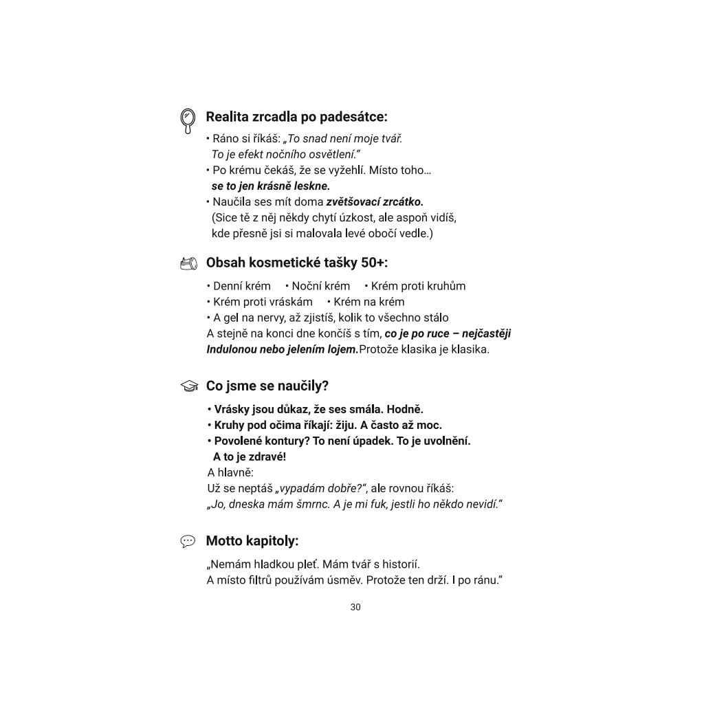 • příběhy o menopauze, lásce, vráskách, módních přešlapech a tajném potěšení z ticha,