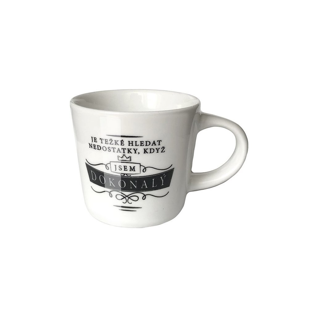 Stylový text na minihrnečku: "Je těžké hledat nedostatky, když jsem dokonalý", je skvělým dárkem pro manžela, přítele, kolegu, kamaráda,nebo bráchu.