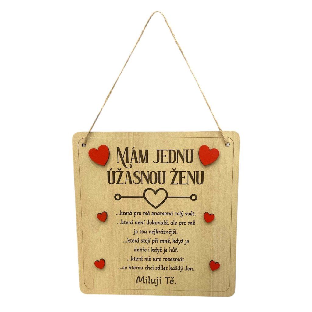 Stylová dřevěná tabulka s jemným romantickým nápisem je krásným doplňkem do každého domova. Skvěle se hodí jako milý dárek z lásky pro partnerku nebo jako dekorace, která každý den připomene, co je v životě nejdůležitější.